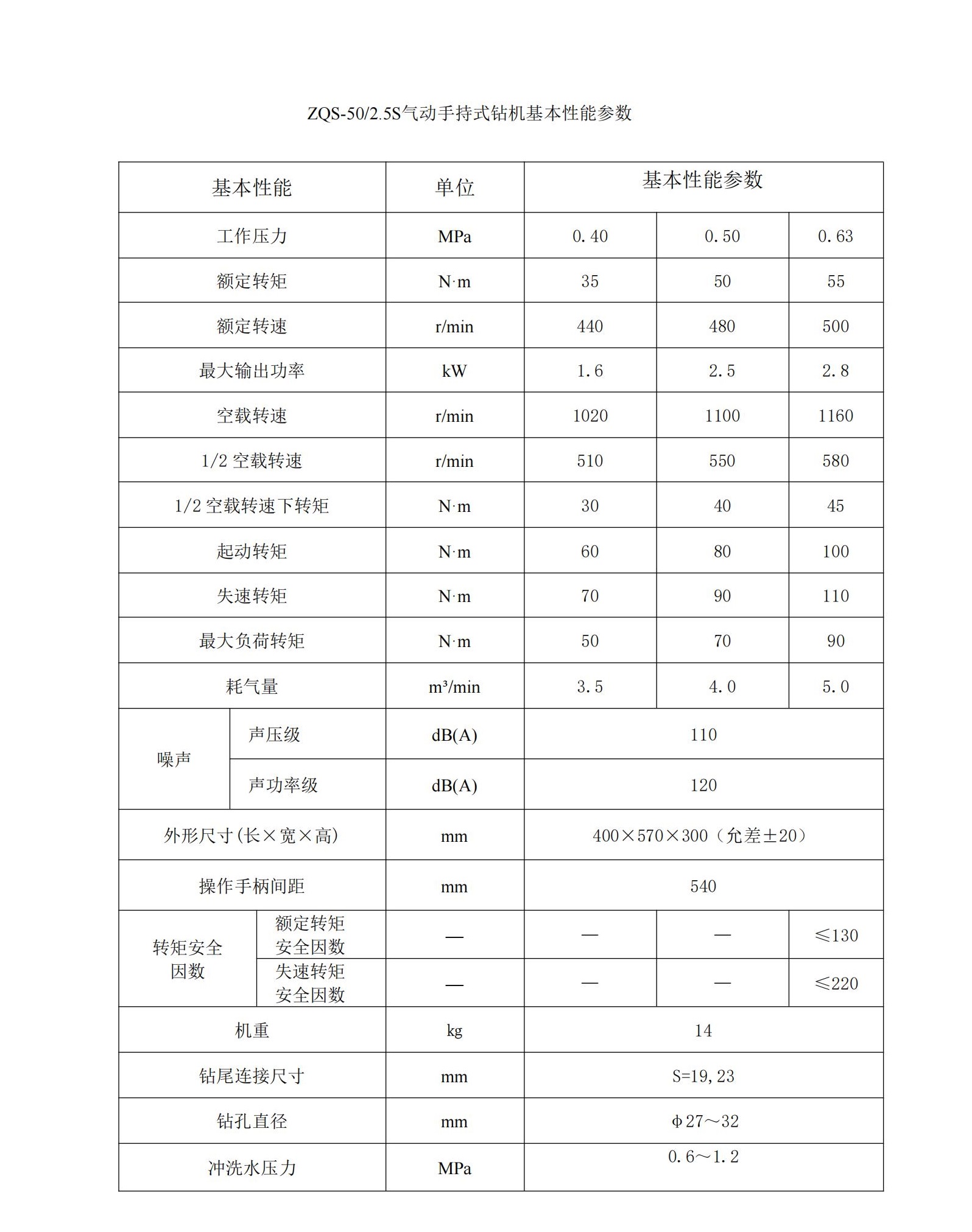 气动手持式钻机 ZQS-50(2.5S)