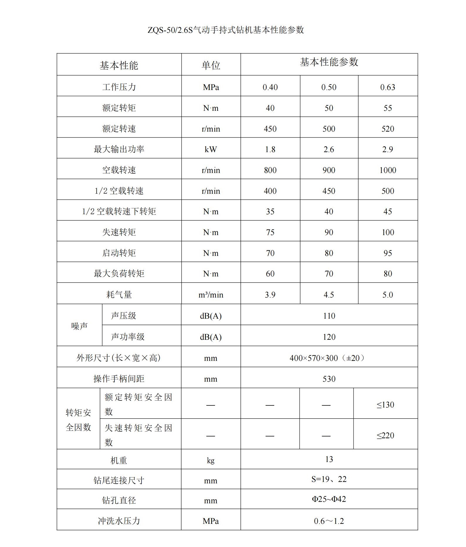 气动手持式钻机 ZQS-50(2.6S)