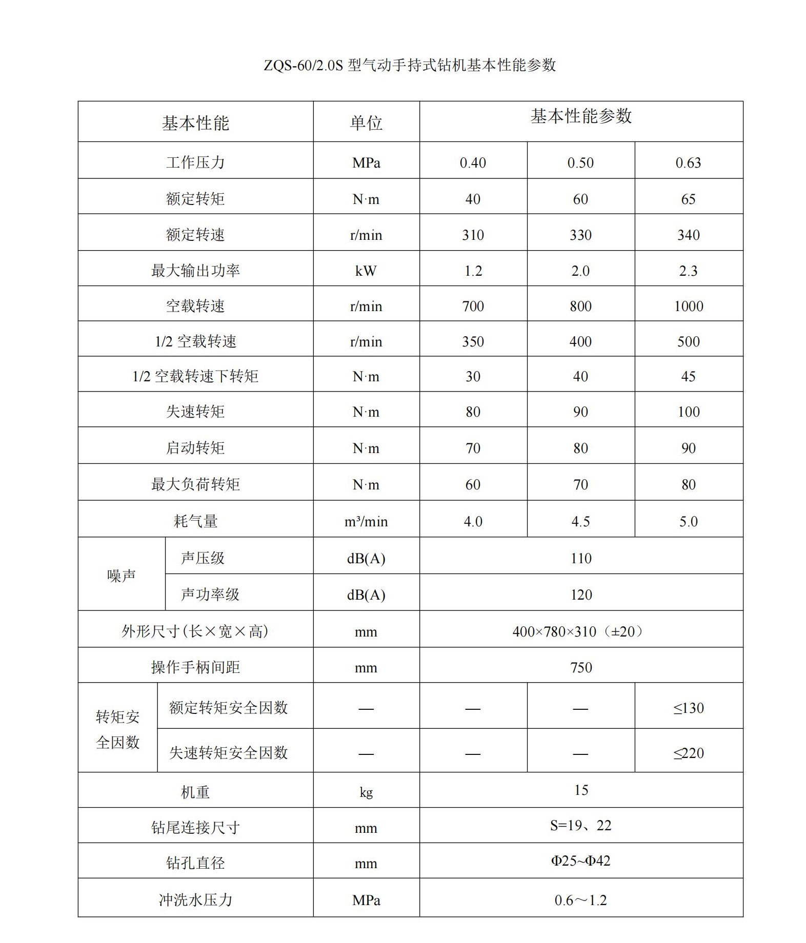 气动手持式钻机 ZQS-60(2.0S)