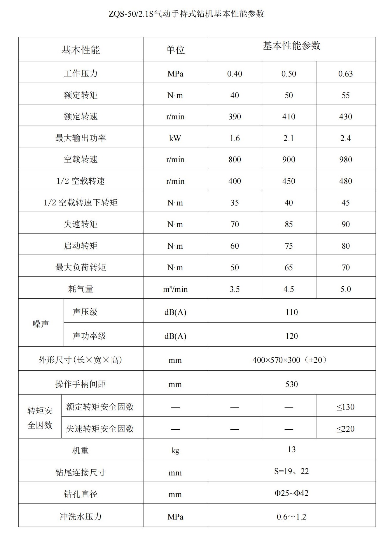 气动手持式钻机 ZQS-50(2.1S)