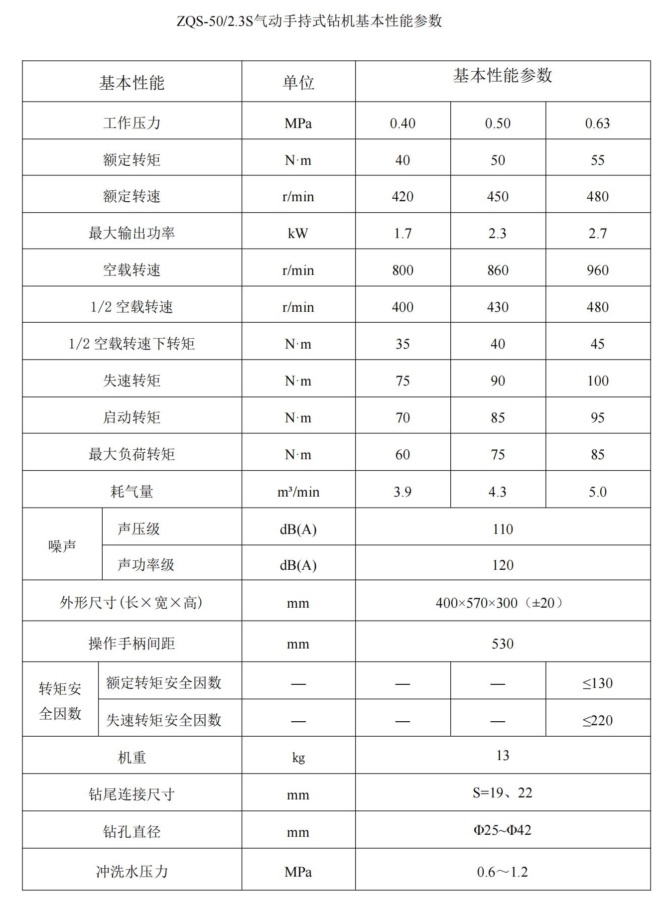 气动手持式钻机 ZQS-50(2.3S)
