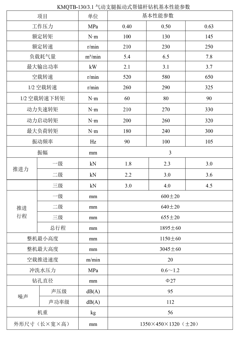 气动支腿振动帮锚杆钻机 KMQTB-130(3.1)